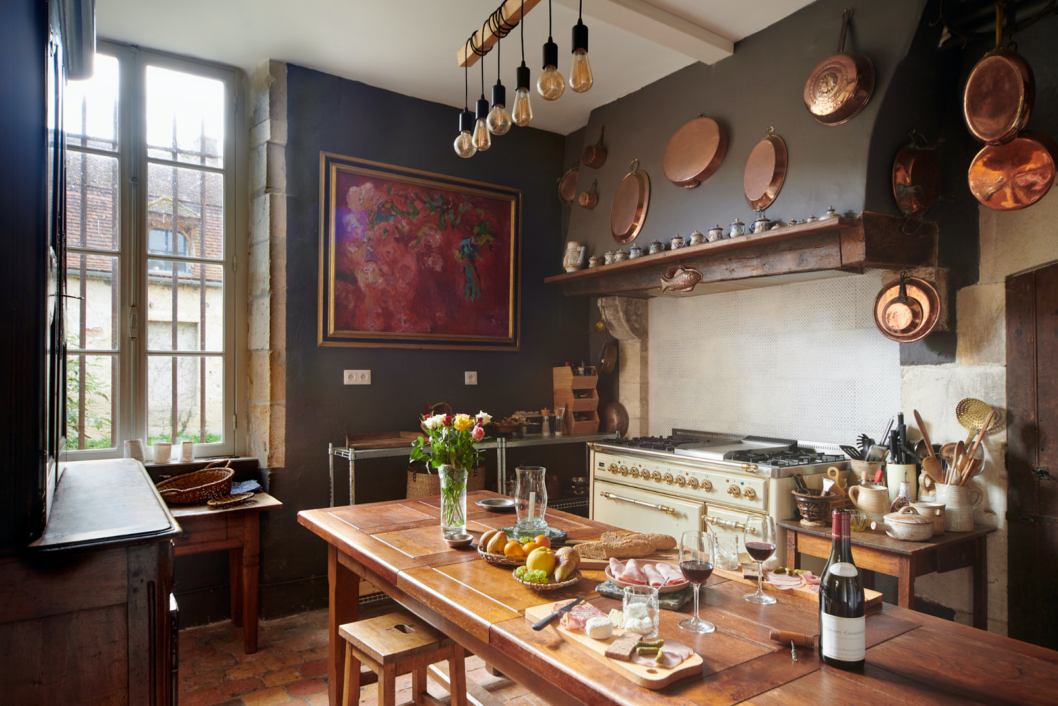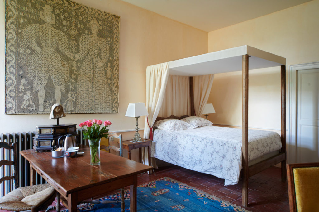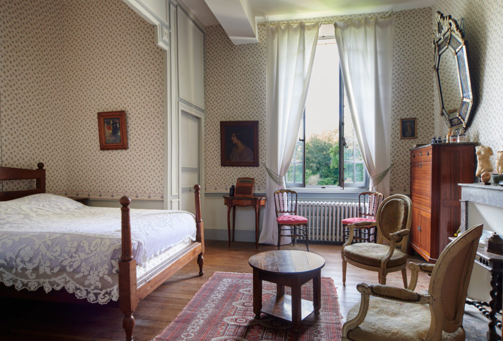 Grands volumes aériens structurés par la douce pierre blonde de Bourgogne, des recoins, escaliers secrets, chambres charmantes, salles et salons peuplés de meubles rares et d’objets chinés au fil des générations, le tout vibrant d’une patine d’origine.